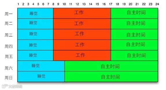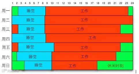 一个完美的工作日开始于早上8点到9点,结束于下午5点到6点。这样的生活方式。按照8小时工作日来计算,每周的工作时间应该是40个小时。理想状态下,他的生活节奏是这样的: