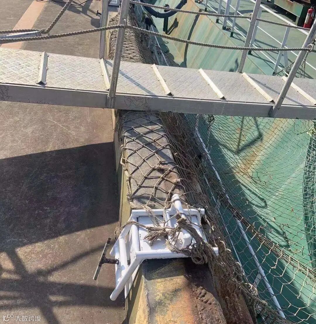 码头泊位在停靠船舶作业期间,需将安全网系挂在登船梯下方,以防人员在通过登船梯时意外坠海,但现有码头设施暂未设置有安全网系挂点。