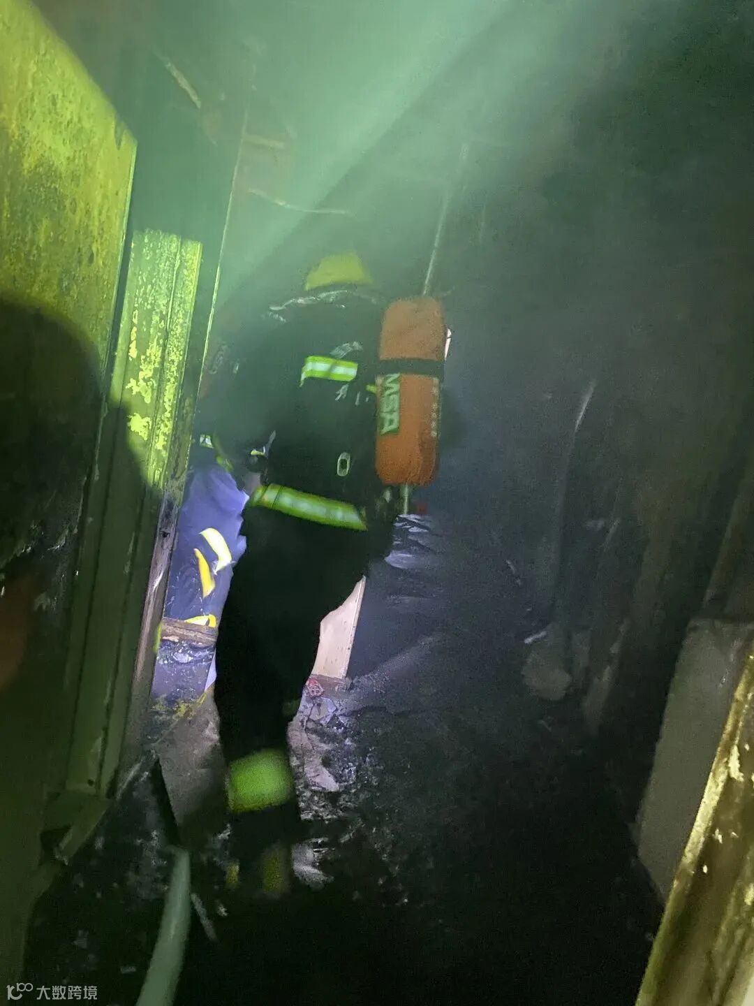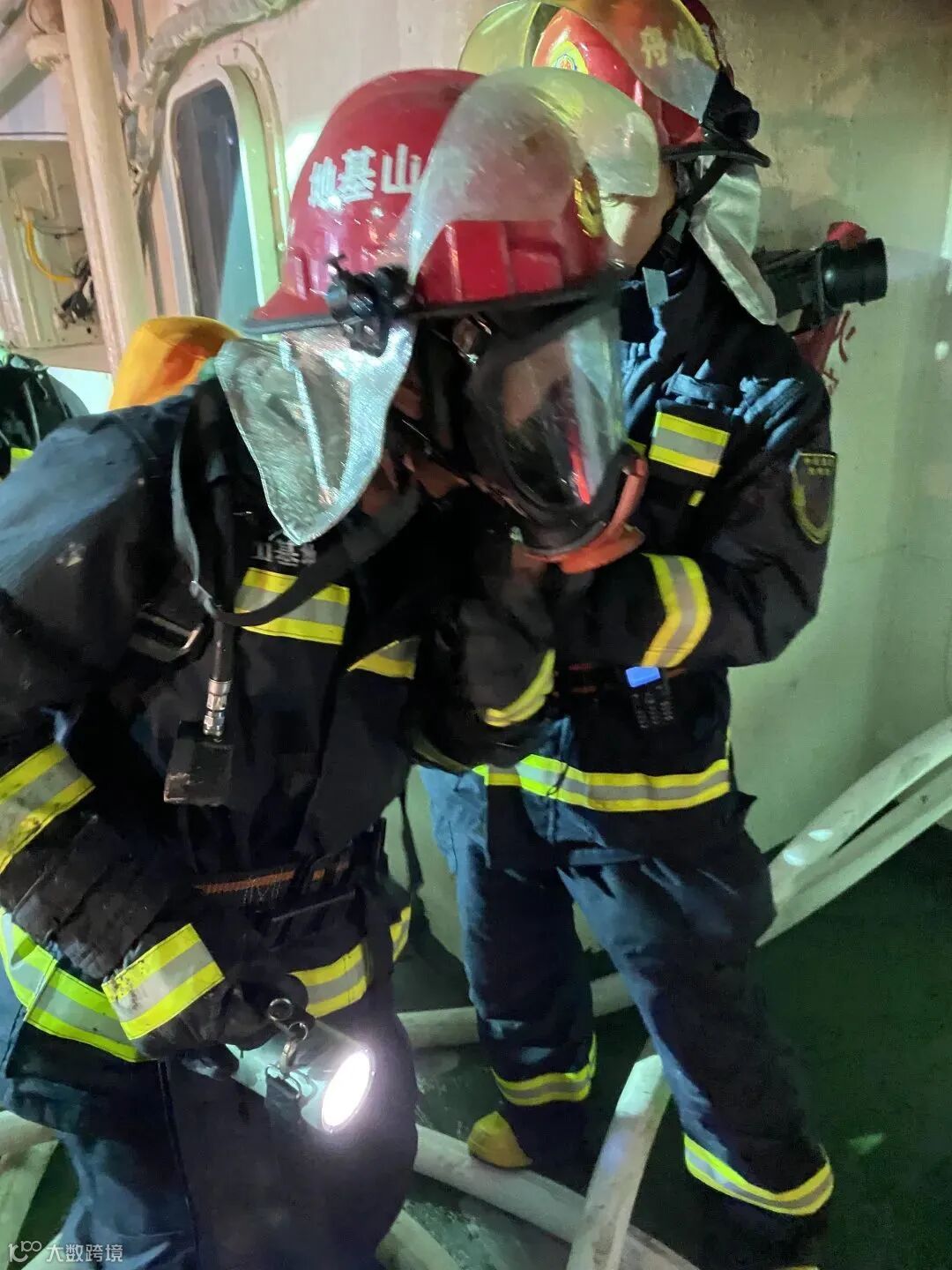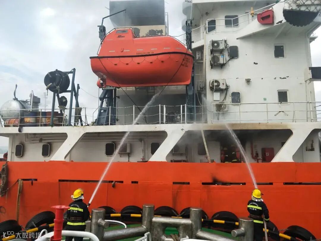 ▲救援队员登船灭火