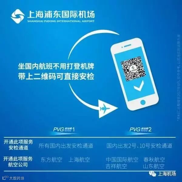 经常坐飞机的小伙伴注意啦!上海浦东、虹桥两大机场已联合多家航空公司开通“二维码过安检”服务。旅客若到浦东或虹桥乘坐国内航班,即可通过航空公司官网、微信、app等在线办理乘机手续后,无需打印登机牌,可持航空公司推送的有效二维码及个人有效证件直接前往安检。