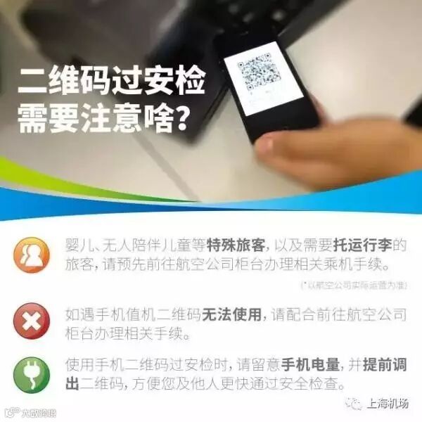 不过,机场方面同时提醒,扫二维码过安检也有所限制。婴儿、无人陪伴儿童等特殊旅客,以及需要托运行李的旅客,应先前往航空公司柜台办理相关乘机手续。如遇到手机值机二维码无法使用,也应前往航空公司柜台办理相关手续。