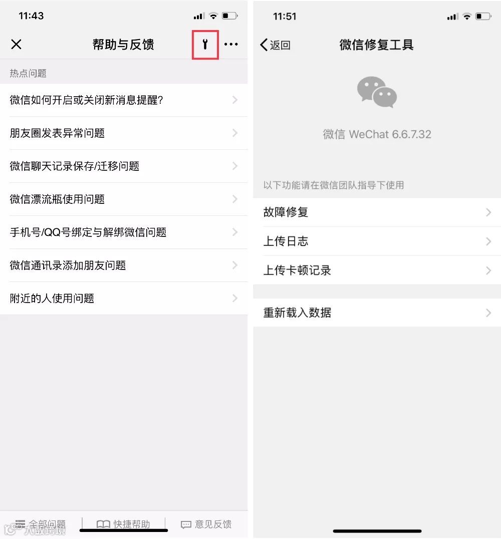 「重新载入数据」可以修复大部分数据异常,例如当你的通讯录和微信表情出现缺失等故障时,你可以使用该工具进行修复。