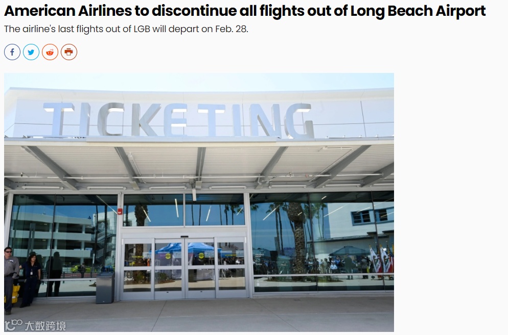 美国航空公司(AA)1月6日周五宣布,该公司将停止长滩机场的所有服务,该航空公司的最后一班航班将于2月份从长滩机场起飞。