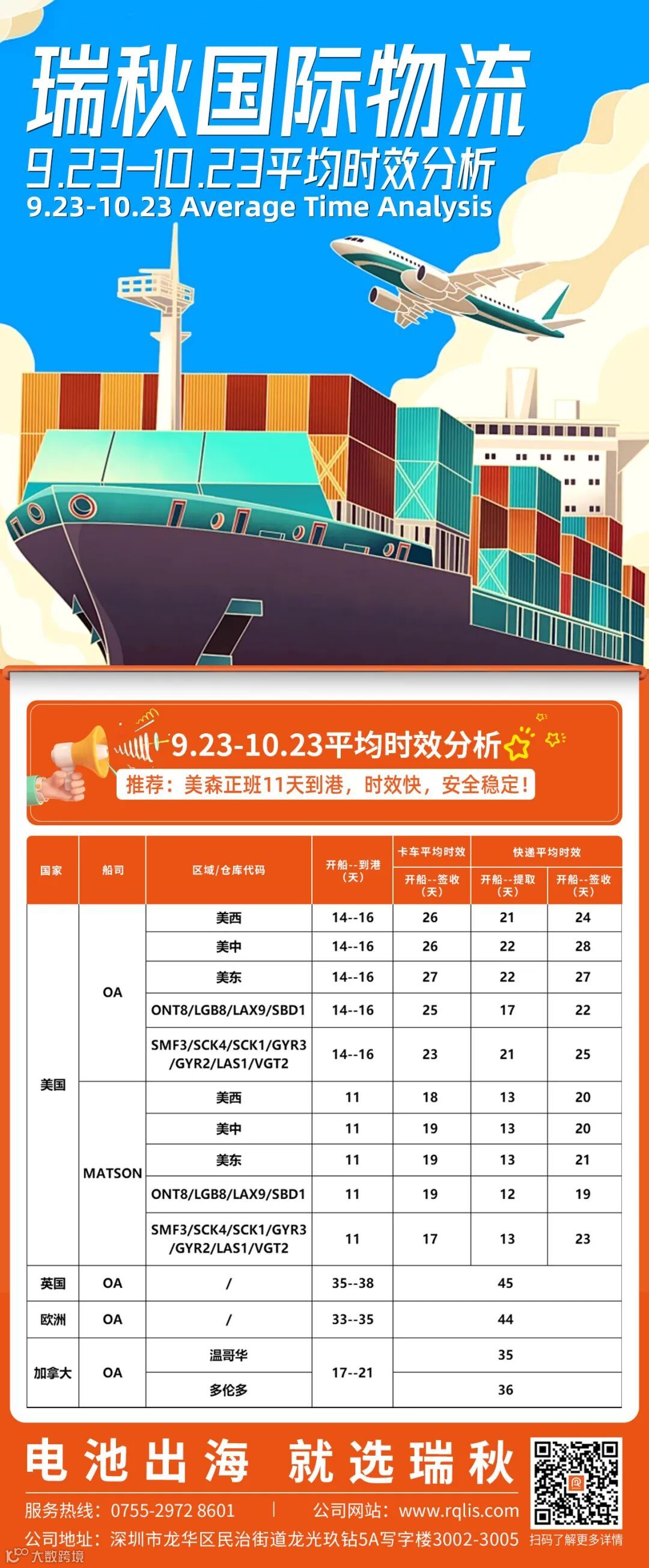 时效更新丨瑞秋国际物流9.23-10.23 物流时效&热点资讯更新汇总!
