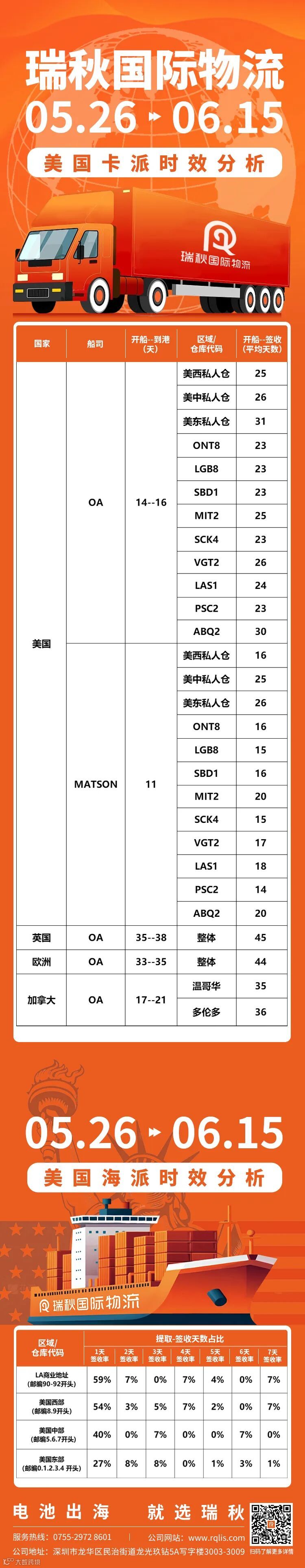 时效更新丨瑞秋国际物流5.26-6.15 物流时效&热点资讯更新汇总! 瑞秋国际电池物流