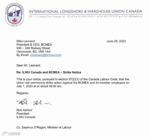 罢工定于当地时间2023年7月1日上午8时开始在加大拿西海岸港口,罢工将代表加拿大西海岸的大多数港口陷入停顿。自2023年3月31日先前的协议到期以来,双方一直无法达成协议。