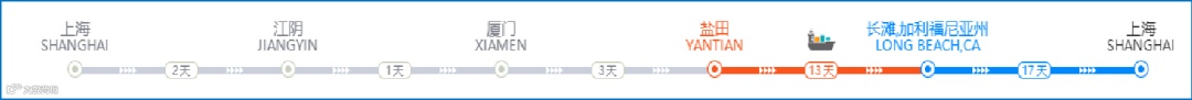 该航线固定(极少数时候的异常情况发生除外)的开船时间为:宁波港口周二开船,上海港口周三开船。