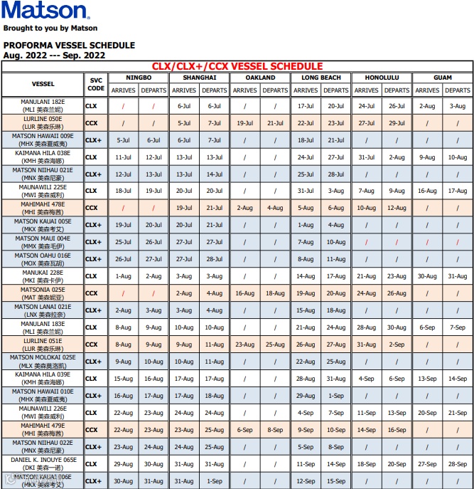 目前,美森CLX正班船一共有五艘船服务于宁波-上海-长滩航线,分别是: