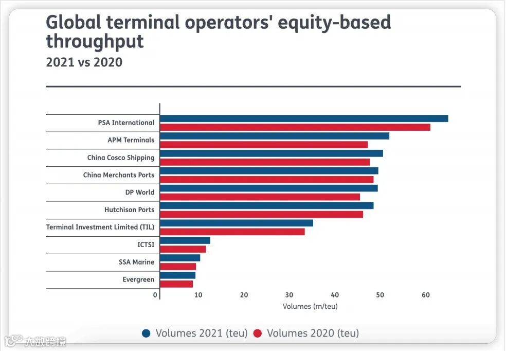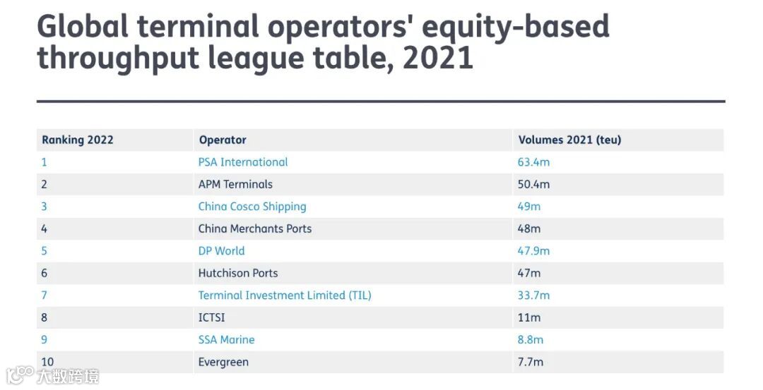 中远海运港口保持了前三的位置,尽管马士基码头超越,但其吞吐量也在上升。从权益吞吐量来看,中远海运港口去年完成箱量4,900万TEU。码头投资组合覆盖中国、东南亚、中东、欧洲、地中海和南美等,在全球37个港口共经营和管理367个泊位。