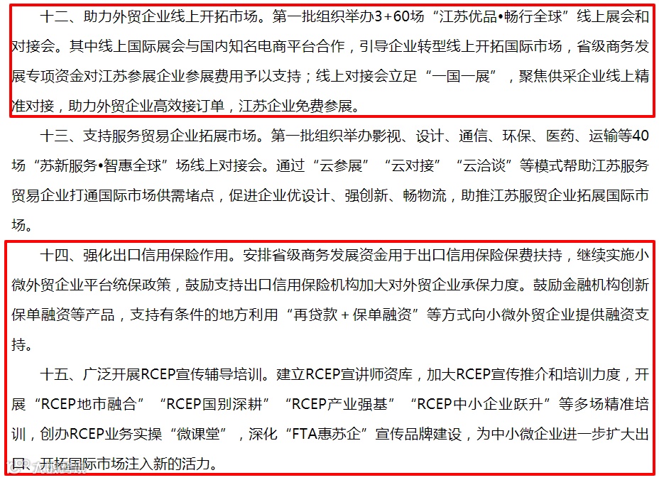 4月12日,江苏省商务厅发布《关于进一步帮助商务领域市场主体纾困解难若干措施》的通知,其中特别提及:
