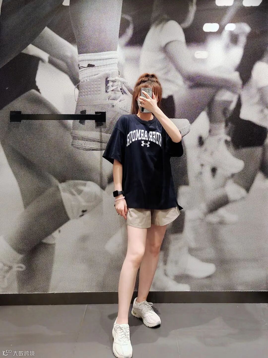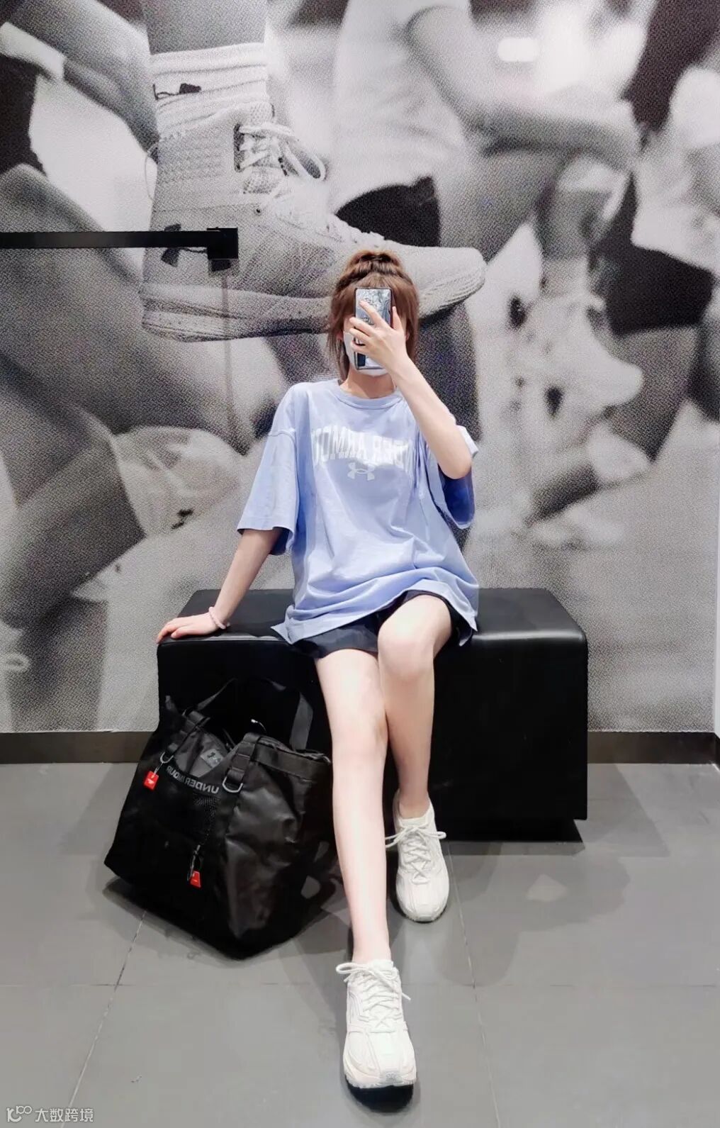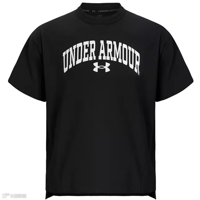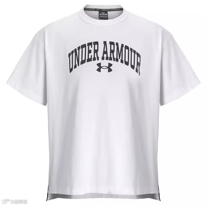 衣身饰有品牌logo印花,前短后长开衩设计,简约时尚。