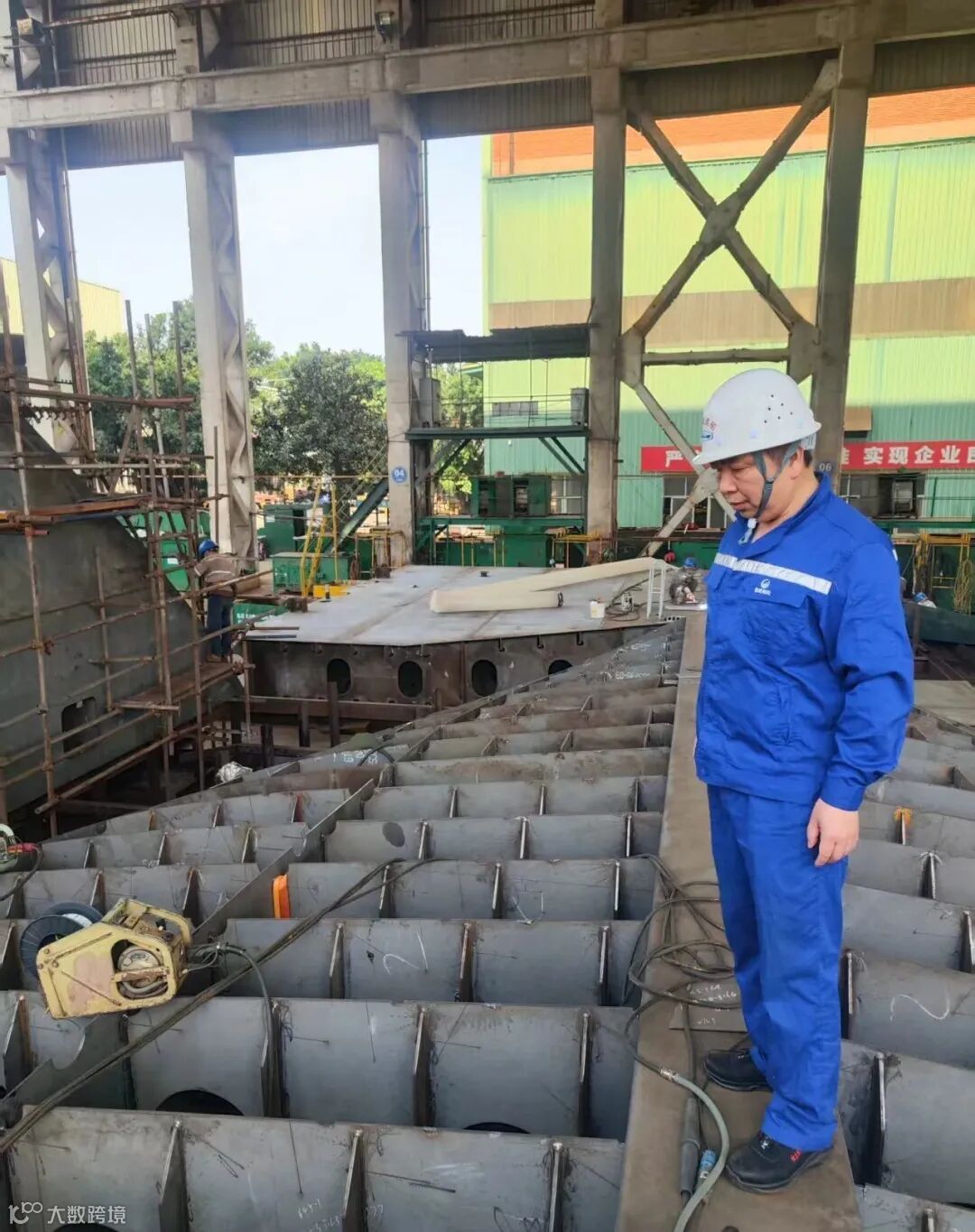 福港拖轮2940KW增程式纯电动拖轮正在紧锣密鼓地建造中,目前处于小件拼装阶段。公司高度重视,派遣经验丰富的指导船长、轮机长前往监造,他们实时跟踪船舶建造进度,和船厂相关方负责人商讨、对接每日工作事项,严格监督施工人员安全生产情况,经常加班加点把关船舶建造项目报检工作。临近夏日,监造现场温度已逼近35度,他们不惧炎热,在现场仔细监督施工情况,以确保船舶建造项目高质高效完成。