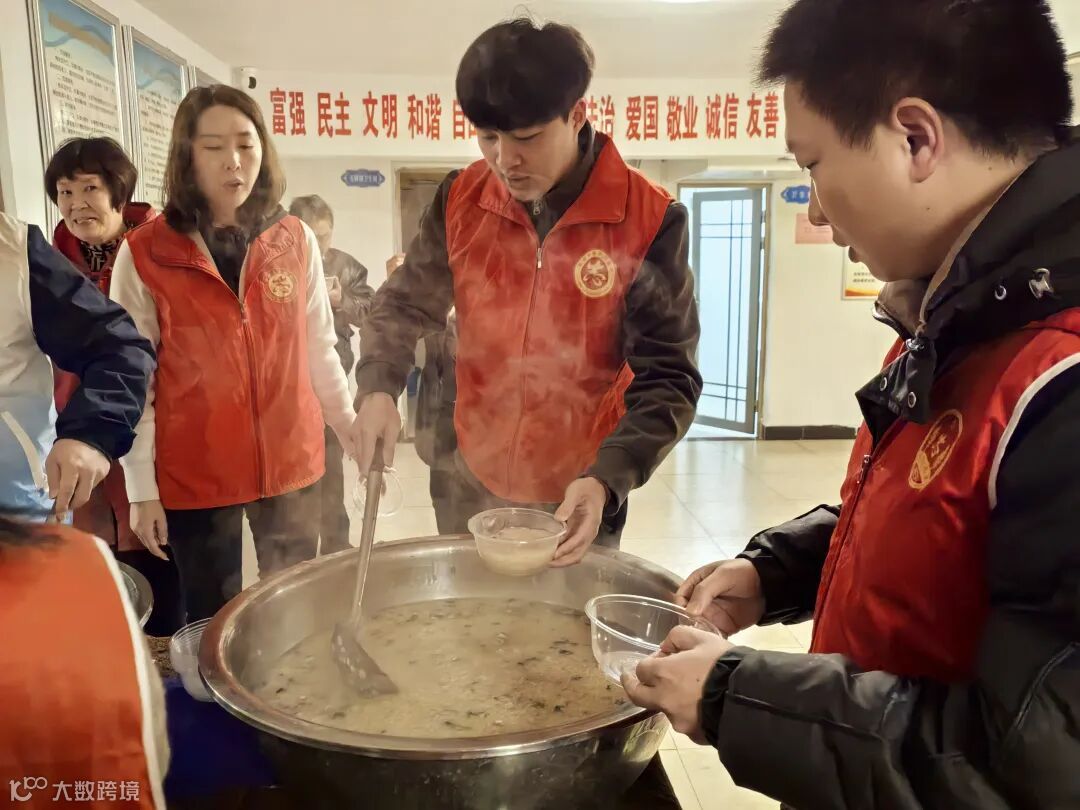 拗九节当天早上,志愿者们早早就来到现场忙活起来,将食材放入锅内精心熬煮。活动现场,志愿者们将一碗碗热气腾腾、香糯可口的拗九粥赠送给现场的群众们,空气里的暖意、嘴巴里的甜意飘进了群众们的心里。