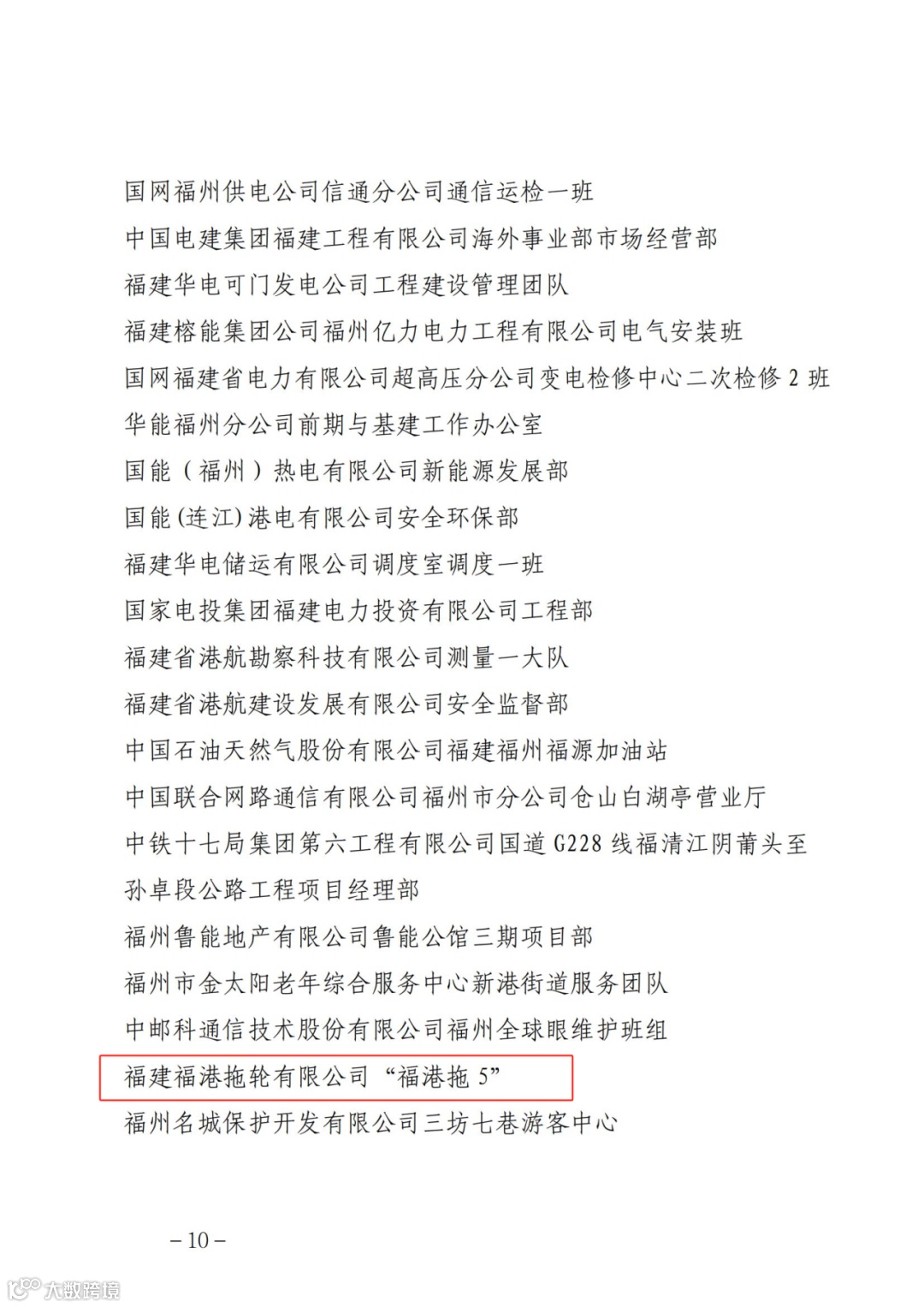 “福港拖5”是福港拖轮所属24艘自有船舶之一,曾多次被公司及上级评为安全生产先进集体,是福港拖轮海上救援队伍的重要组成力量,勇于承担抢险救助、水上消防、护桥护航等社会责任。自建成投产以来,积极参与地方重要设施、大型活动、重要时段及重要民生物资进出港作业安全监护,全力保障服务港区水上交通安全,践行国有企业初心使命。班组自组建以来,结合公司经营发展目标,在船长为班组长、大副为副班组长的带领下,充分调动班组成员的积极性,团结协作,攻克难关。为了更好地落实安全生产,班组紧紧围绕“标准化”作业要求,严格遵守各种作业操作规程和船舶管理规章制度,把凝聚的共识和激发的力量转化为具体行动,出色完成各项水上抢险救助任务,最大程度保障船舶所在辖区生命财产安全,自投产以来,实现航行及作业安全无事故。仅2023年度,共参与抢险救助10次,抢救人员67名,保障社会财产750万多元。他们以饱满的工作激情、务实的工作态度,展现了爱岗敬业、勇于拼搏的奉献精神,赢得了福州市总工会的高度评价,荣获2024年福州市“工人先锋号”的殊荣。