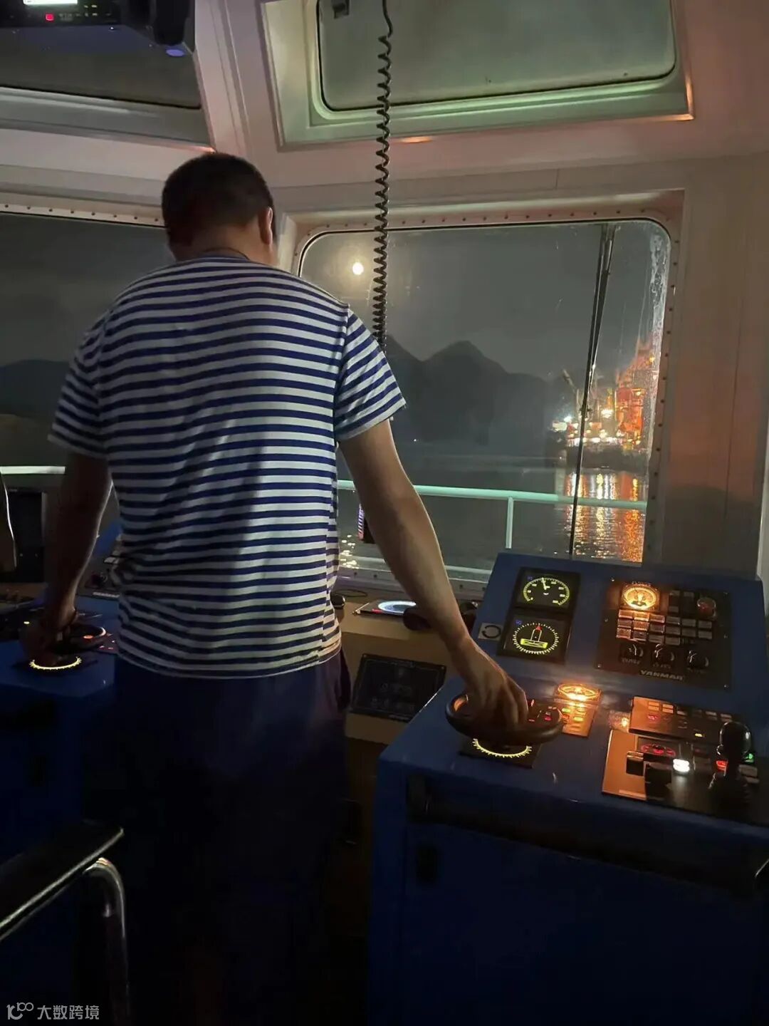 图为凌晨一点,福港拖23刚刚结束离泊作业