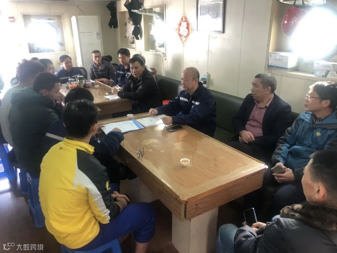 2020年12月31日,福港拖轮党总支书记林炳坚、副总经理陈建丰带队前往文关引航基地“消拖9”轮。检查小组重点检查了船体保养、船容船貌、设备设施等维护保养情况,以及上船人员登记、防疫物资领用等台账记录。林炳坚书记与船员们亲切交谈,详细了解大家在船工作、生活情况,并代表公司领导班子向一线船员送来节日的祝福和问候。