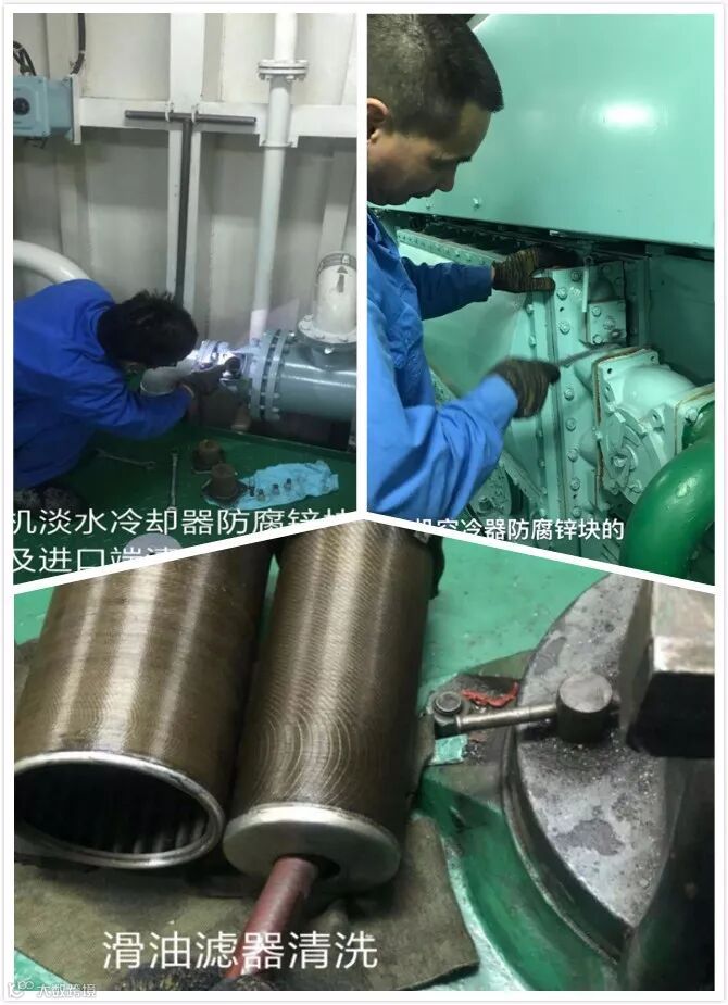 五月的到来,预示着夏天即将来临,对于机舱轮机人员来说,人和机器的工作环境都将变得恶劣,为了保证机器一直处于良好的技术状态,避免船舶不适航的情况发生,我们必须更加勤快的保养船舶各个零部件。“五一”当天,随着气温、水温的升高,船舶设备的冷却系统负荷加大,我们放弃休息,全员上阵、各司其职,有的检查主机淡水冷却器防腐锌块、清理淡水进口端,有的清洗滑油滤器,有的检查更换空冷器防腐锌块,对影响机器油温、水温、油压、水压的各个重要部件进行检查和保养,从而对船舶机器的状况做到心中有数,保证船舶随时处于良好的适航状态。