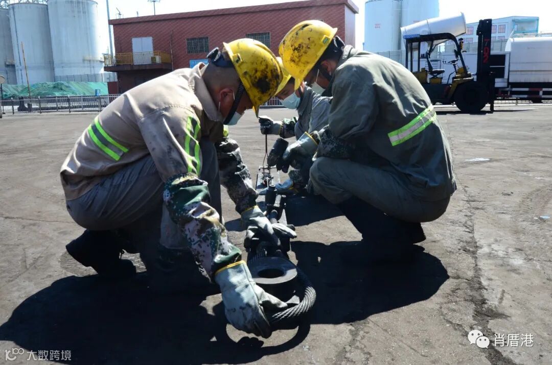 走进码头机修车间,叉车来回穿梭、机修工人不断作业,一派繁忙景象。露天地面上,迎面而来的热浪扑在脸上,火辣滚烫。纵然天气炎热,大家依然穿着长衫、长裤,带着口罩、面具在高温下坚守一线,汗水湿透了他们的衣背。