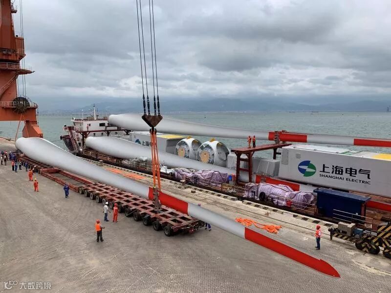 7月2日,载着两台套4兆瓦的上海电气风电机组的“千汇007”轮靠泊在公司码头4#泊位,11时许随着6片各长63.4米重18.5吨的风电叶片(以下简称风叶)安全装卸落地,标志着中交三航厦门公司海上风电项目安装基地正式落户公司。