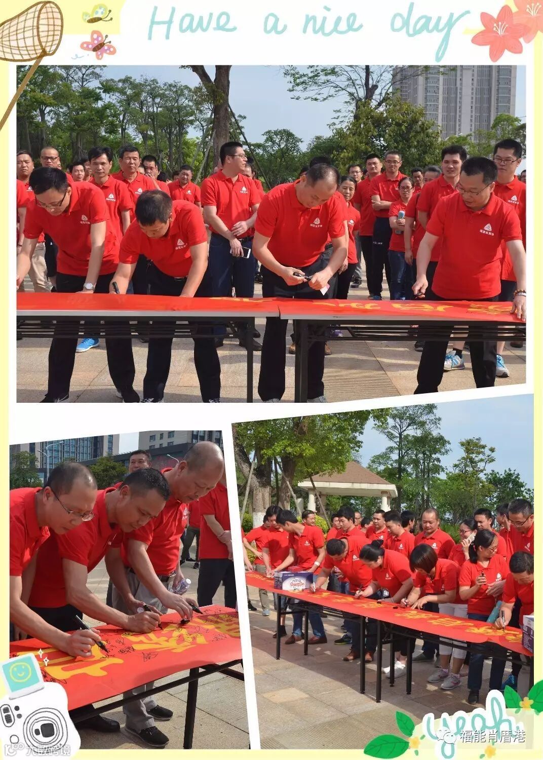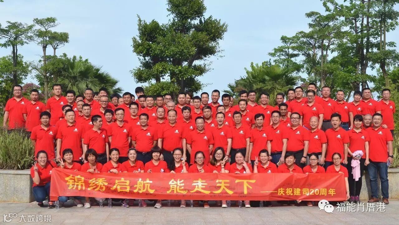下午16时,身穿红色定制衫的百名职工齐聚在锦绣公园,并在横幅上留下自己的签名,以此见证和拉开公司20周年庆典的帷幕。党总支书记戈铭发主持活动,公司董事长兼总经理郑建洪致词,号召职工同志们在“真诚、有为、开心”的企业核心价值观的引导下,以“有福能走天下”的豪迈情怀,迈开步伐,走市场,拓业务,全身心投入到企业建设发展的浪潮中,共同奔向美好的锦绣未来!