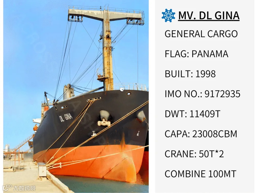 MV DL GINA(并吊100mt)6月初空土耳其方向,接黑海/地中海方向回程货