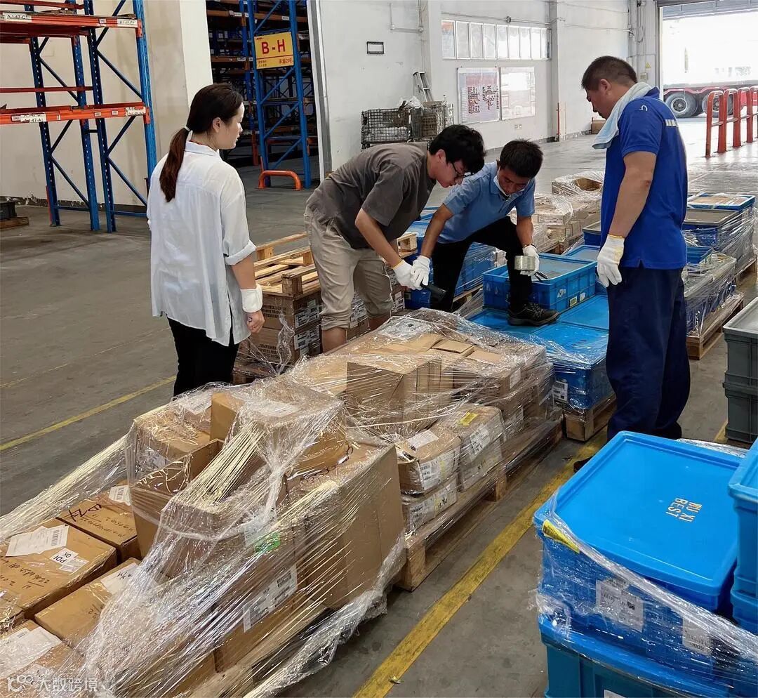 在原仓库做交接的同事们,身负重任。他们深知第一道关口的重要性。小至一颗小小的螺丝钉都认真清点,即便汗如雨下。