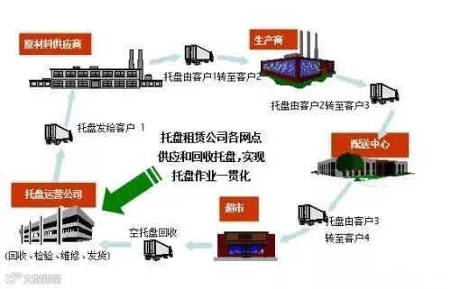 封闭式系统:封闭式的托盘循环共用系统指的是由托盘租赁企业在全国设立租赁运营网点,购买托盘建立托盘池。用户从托盘租赁企业租赁托盘,装载货物后不更换托盘,托盘在不同用户循环共用,分别支付相应的分时租赁费用,一直送达最终客户后,由当地托盘租赁企业的运营网点回收托盘,再出租给其他企业。具体如下图所示: