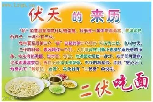 “三伏天”是一年中气温最高,并且潮湿闷热的日子,民间百姓说的“苦夏”就在此时。在这个时节要注意增加营养,食物以清淡、易消化为宜,少吃油腻和辛辣的食物,少饮酒、少抽烟。另外,要做好心理调节,要静心、安神、戒躁、息怒。