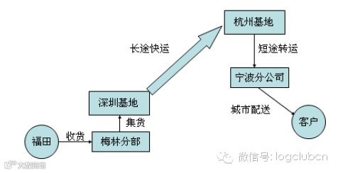 2、公路快线:也就是卡车航班,是航空代理衍生出来的零担运输模式(恒路是典型),也是主要提供中心城市为点到点的跨省长途干线运输,一般只经营“点到点”运输,面向同行收货,部分第三方物流有直客货源(打“擦边球”赚取超额利润)。相对普通的公路专线,公路快线时效更有保证,部门热门中心城市互通,如华南到华东,华南到华中等中心城市,公路快线时效比航空运输差不了多少,尤其是周末发货,对客户来讲,时效上都能接受,但价格比航空低2-5 倍,非常具有市场竞争力。如图: