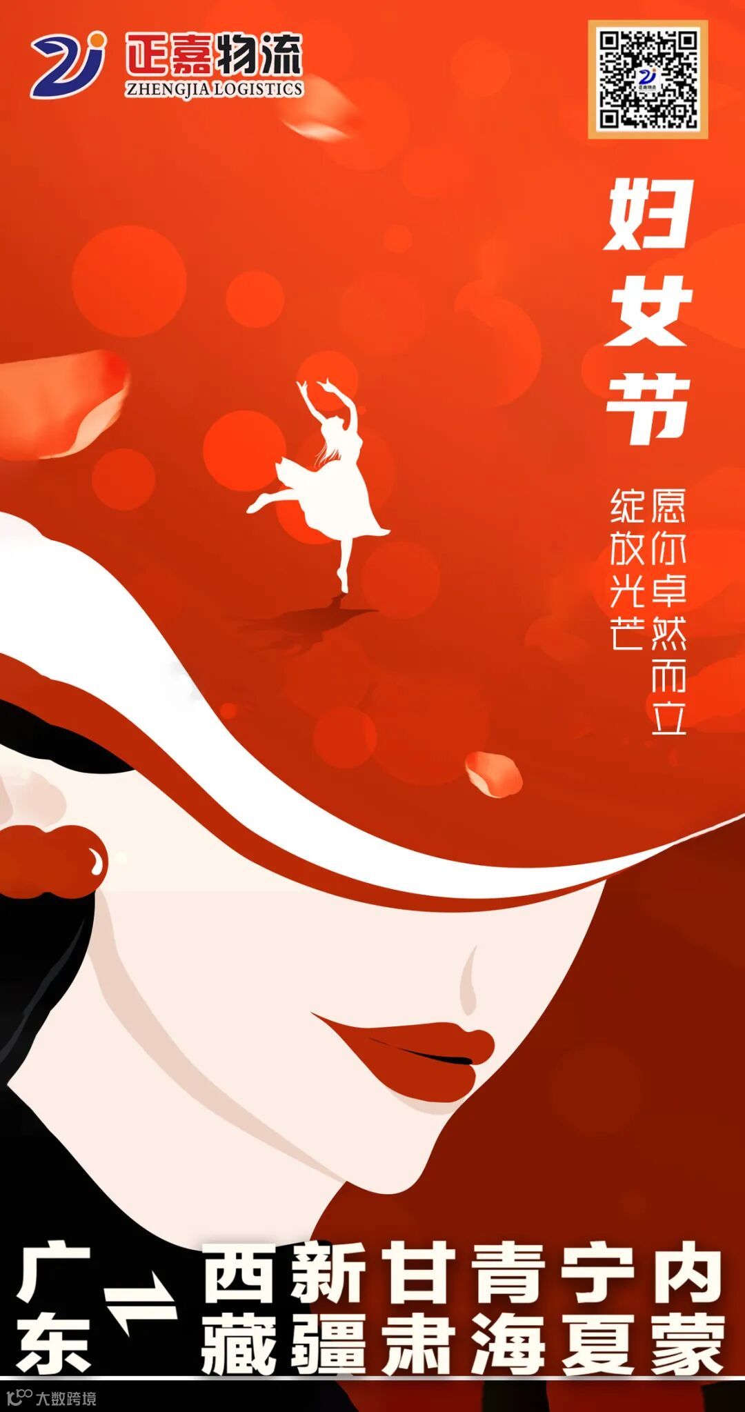 今天是国际劳动妇女节,又称三八妇女节,在这个充满爱与尊重的日子里,正嘉物流向所有的女性朋友们致敬!感谢大家在各个领域为国家、为企业、为家人所做出的贡献!