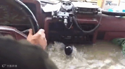 汽车涉水时,要保证发动机运转正常,挂低速挡平稳开进水中,避免大轰油门或猛冲,以防止水花溅入发动机而熄火。