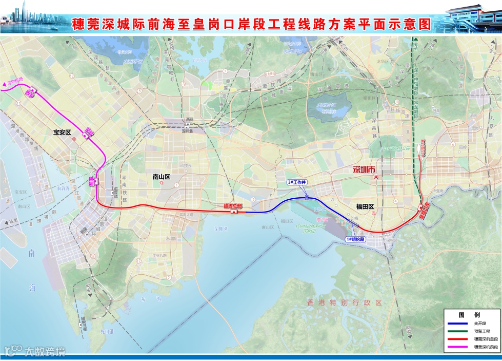 穗莞深城际铁路连接广州、东莞和深圳,在深圳段的延长线包括深圳机场至前海段(简称“机前段”)和前海至皇岗口岸段(简称“前皇段”)。其中,机前段全长约15.2公里,全线共设3个车站,分别是:西乡、宝安、前海。预计2025年建成通车。