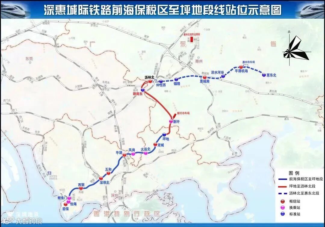 深惠城际铁路连接深圳、东莞与惠州,此线路(深圳段)覆盖深圳前海、南山区、龙华区、龙岗区、东莞凤岗镇,预计2026年12月建成通车。届时,将实现前海至东莞、惠州“1小时交通圈”。
