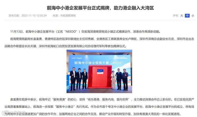 新闻回顾:前海中小港企发展平台正式揭牌,助力港企融入大湾区(点击阅读全文)