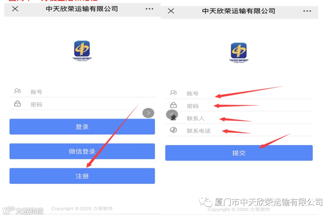 3.注册好之后,用刚刚注册好的用户名和密码进行首次登陆,首次登陆会自动绑定微信,下次进入系统,将自动登陆;