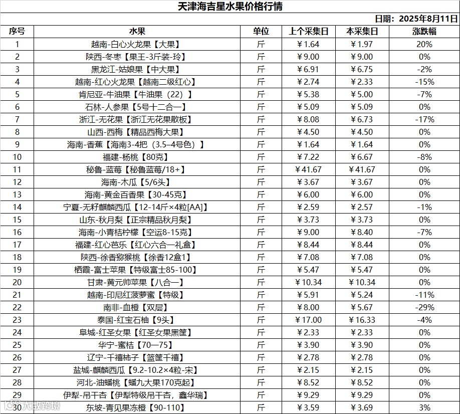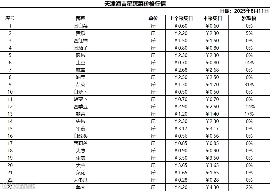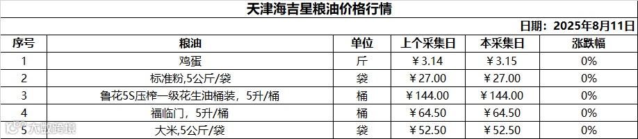 行情丨天津(静海)海吉星2025年8月11日价格行情
