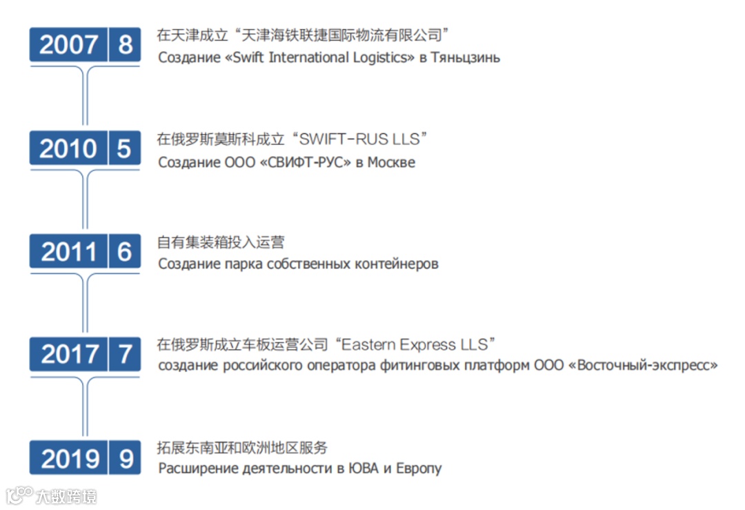 海铁联捷国际物流成立于2007年,总部位于中国天津,在莫斯科、上海、青岛及满洲里等建有分支机构。作为综合性承运人,多年来致力于中国与俄罗斯等国之间快速发展的多式联运业务,通过铁路+铁路、铁路+海运等方式进行综合化营运。海铁联捷多年来始终增加自有车板和集装箱数量,以不断增强运输能力、降低物流风险。如今,众多从事中俄国际贸易的公司将海铁联捷作为首选承运人,为此,我们深感自豪。凭借着客户的长期支持及服务能力的不断提升,海铁联捷未来将获得更加长远的发展。