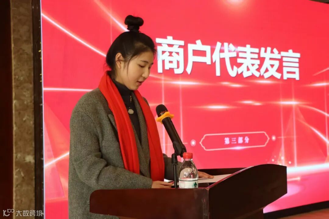 表彰仪式结束后,会议邀请蔬菜商户代表范小盼、水果商户代表刘欣茹、肉类商户代表沈红涛上台发言,商户代表各自分享了从商发展历程,同时对天津海吉星为广大经营户提供优质的营商环境表示衷心感谢。