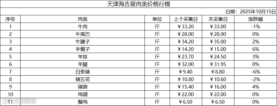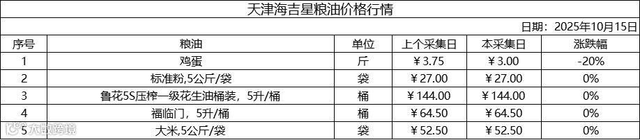 行情丨天津(静海)海吉星2025年10月15日价格行情