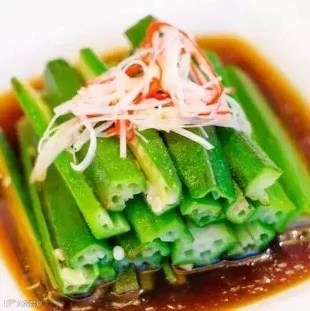 原料:秋葵、辣椒圈、生抽、蒜、糖、盐、油。