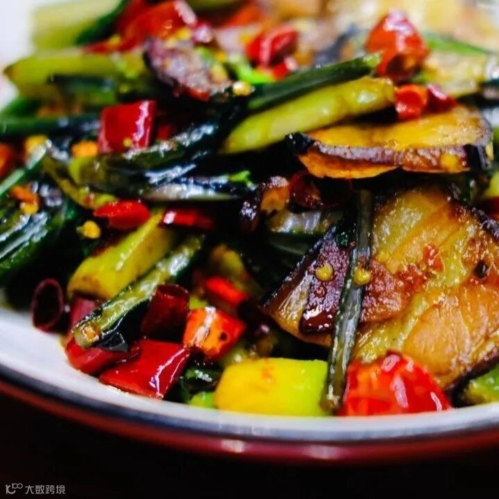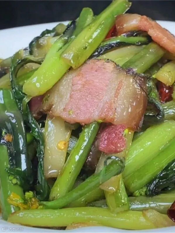 原料:红菜苔、腊肉、油、盐、干辣椒、蒜、生姜。
