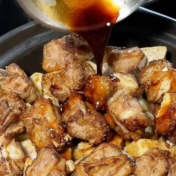 3.用2大匙油炒香蒜瓣,再放入小排骨,加入调味料2和2杯清水烧开,改小火煮20分钟。