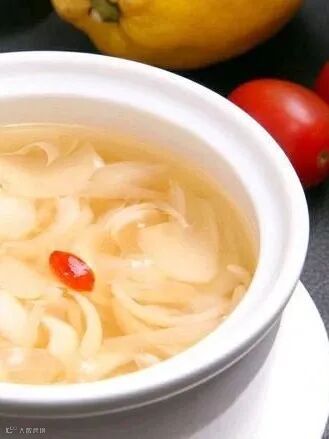 原料:鲜百合 100 克,去蒂,切片;冰糖 50 克(可以根据个人口味适量增减);水 800 毫升。
