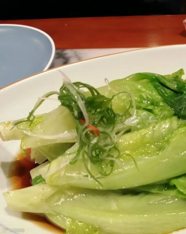 2.罗马生菜飞水,即水烧开后放入生菜,立即关火,再把生菜翻烫一遍,捞出后过凉水。