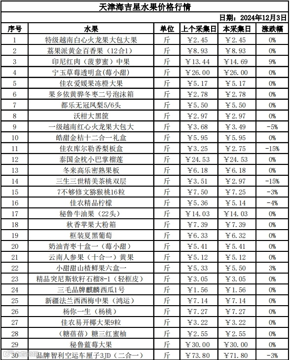 行情丨天津(静海)海吉星2024年12月3日价格行情
