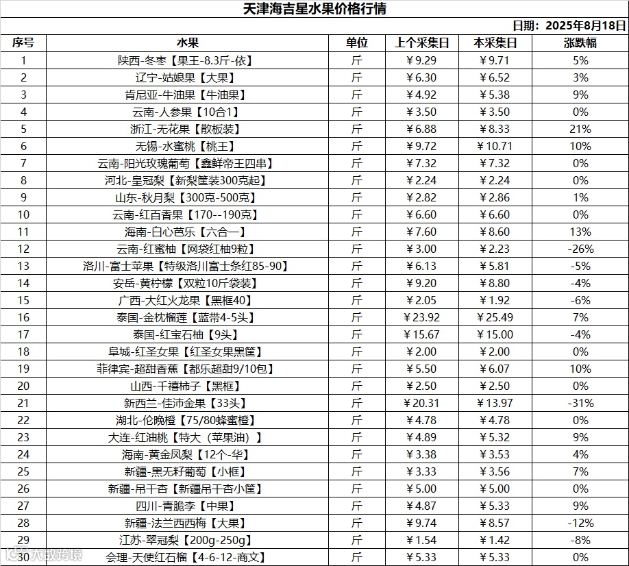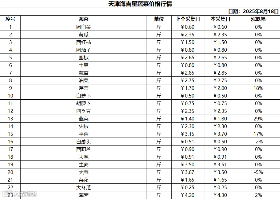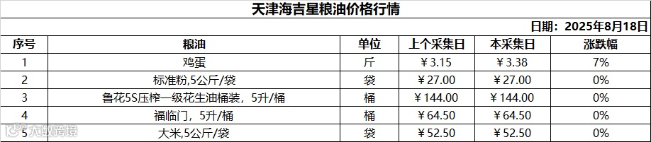 行情丨天津(静海)海吉星2025年8月18日价格行情