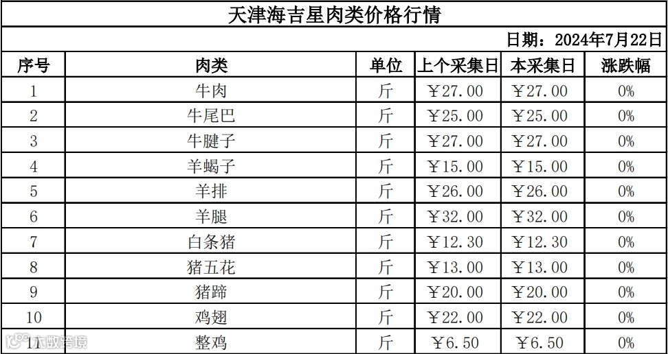 行情丨深农集团天津海吉星2024年7月22日价格行情