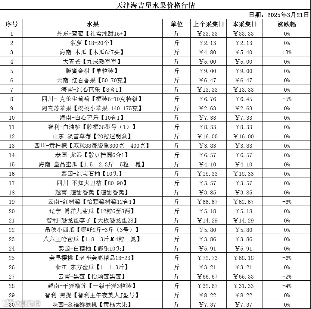 行情丨天津(静海)海吉星2025年3月21日价格行情