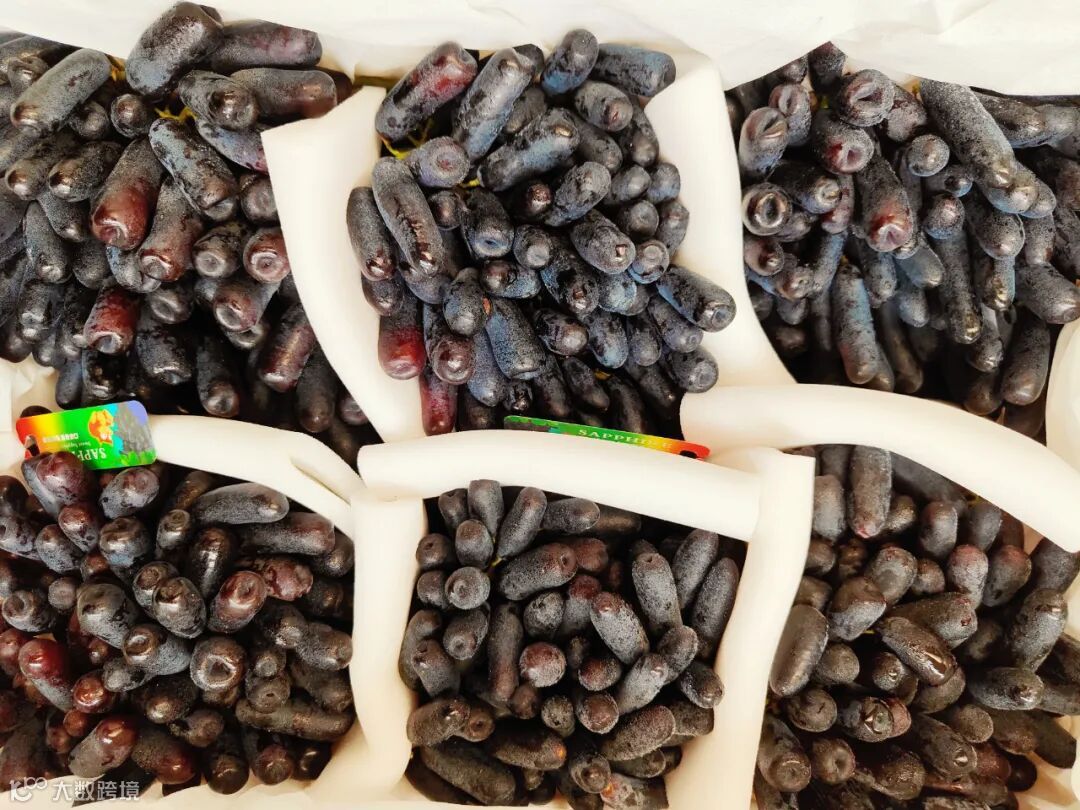 带有浓浓的玫瑰香味,紫中带黑,甜而不腻,没有一点苦涩之味,含糖量高达20度。