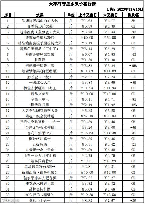 导读:蔬菜类水果类注:以上价格当天统计,仅供参考!长按关注致力美好生活天津海吉星——京津冀菜篮子、果盘子地址 :